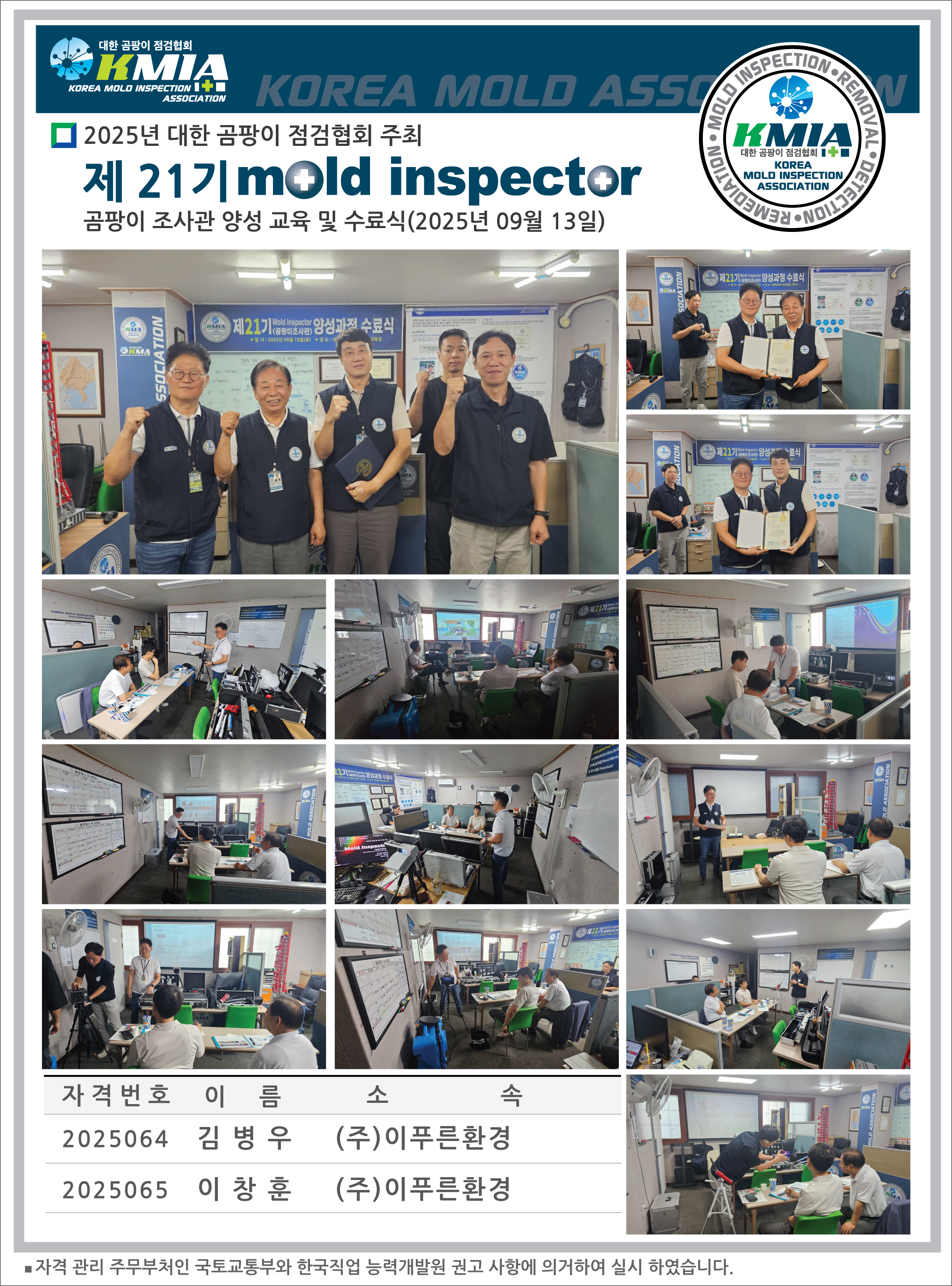 제 21기 곰팡이 점검 조사관[Mold Inspector] 교육 및 수료