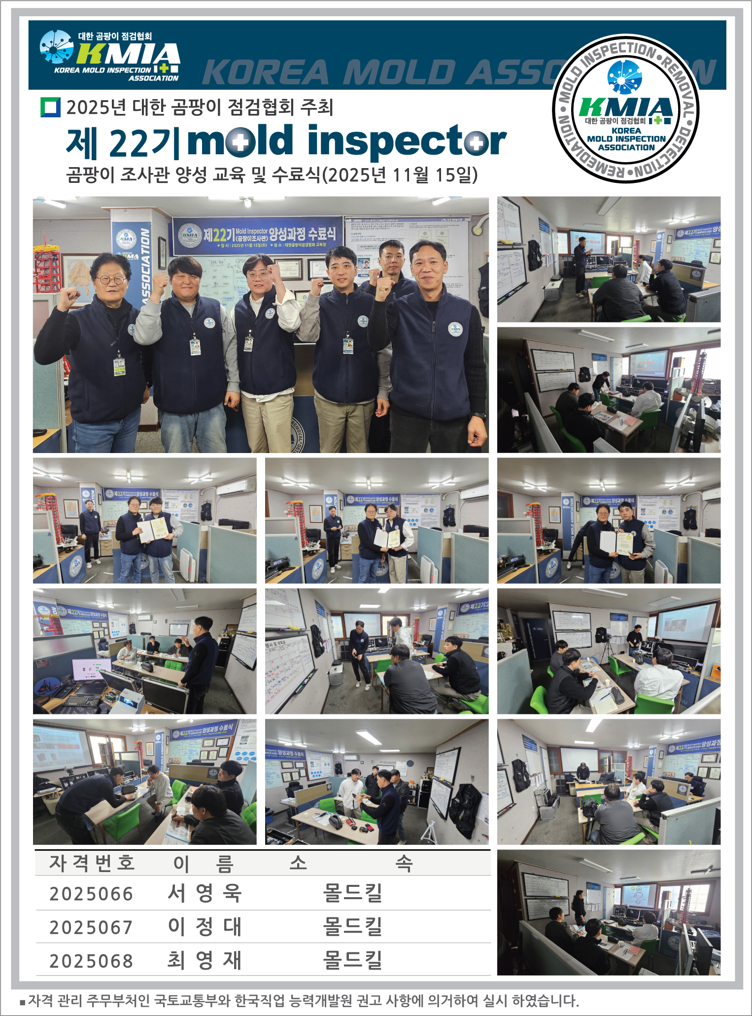 제 22기 곰팡이 점검 조사관[Mold Inspector] 교육 및 수료
